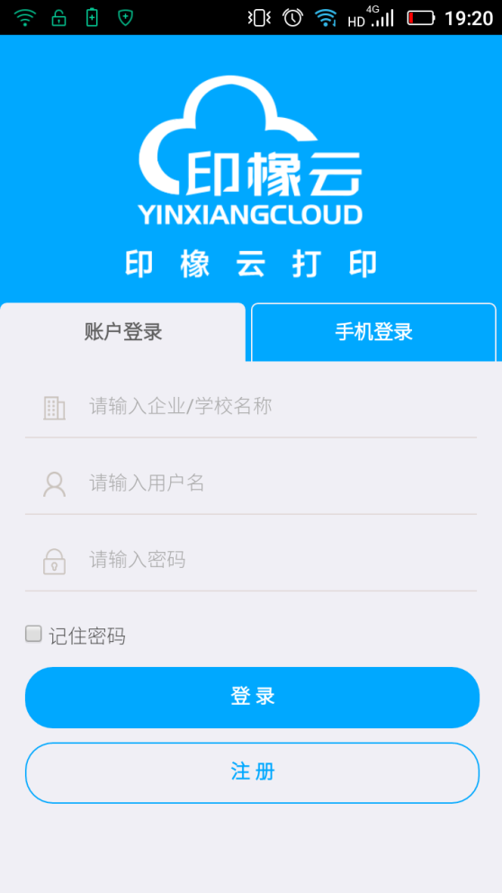 - 打开印橡云打印APP,进入登录界面(无账户用户注册后登录)