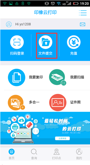 - 登录印橡云打印官网www.yinxiangcloud.com在首页界面扫码下载印橡云打印APP,或直接在安卓市场搜索“印橡云打印”下载并安装。
