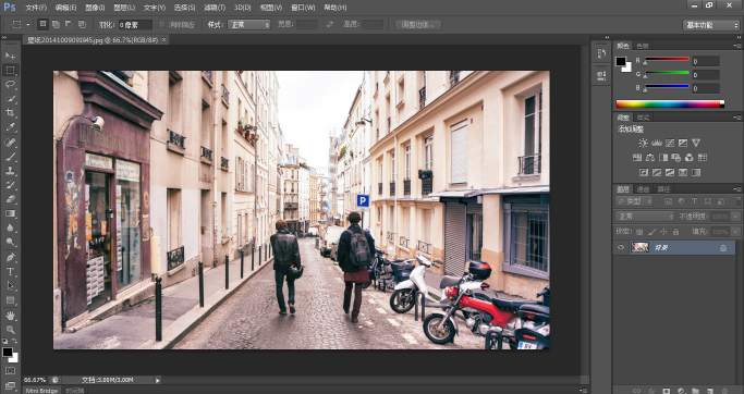打开Photoshop应用程序,打开一份文件,然后点击打印